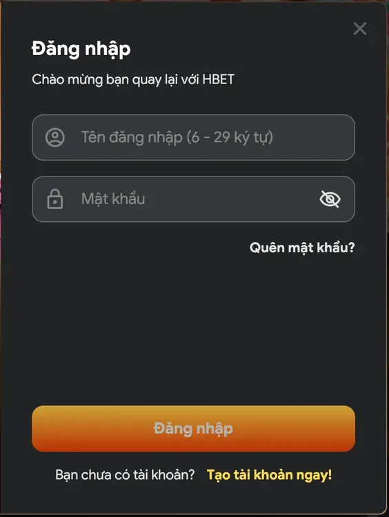 Sau khi đã đăng ký thành công, bạn có thể đăng nhập tài khoản HBET theo các bước sau:
